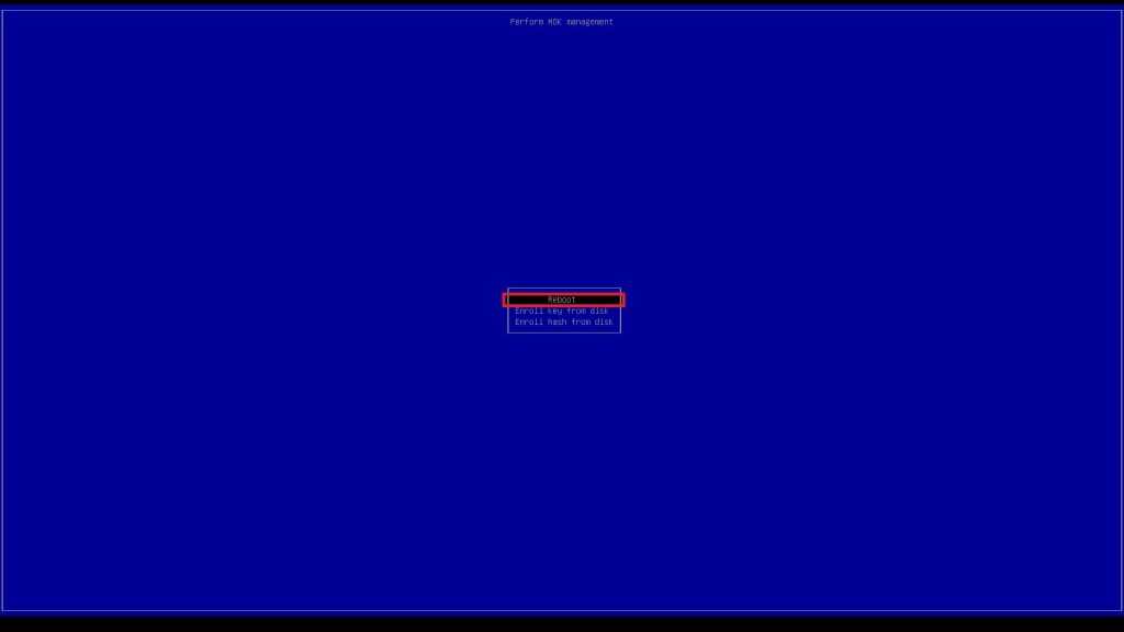 Reboot the system and then press any key to start the MOK management utility
