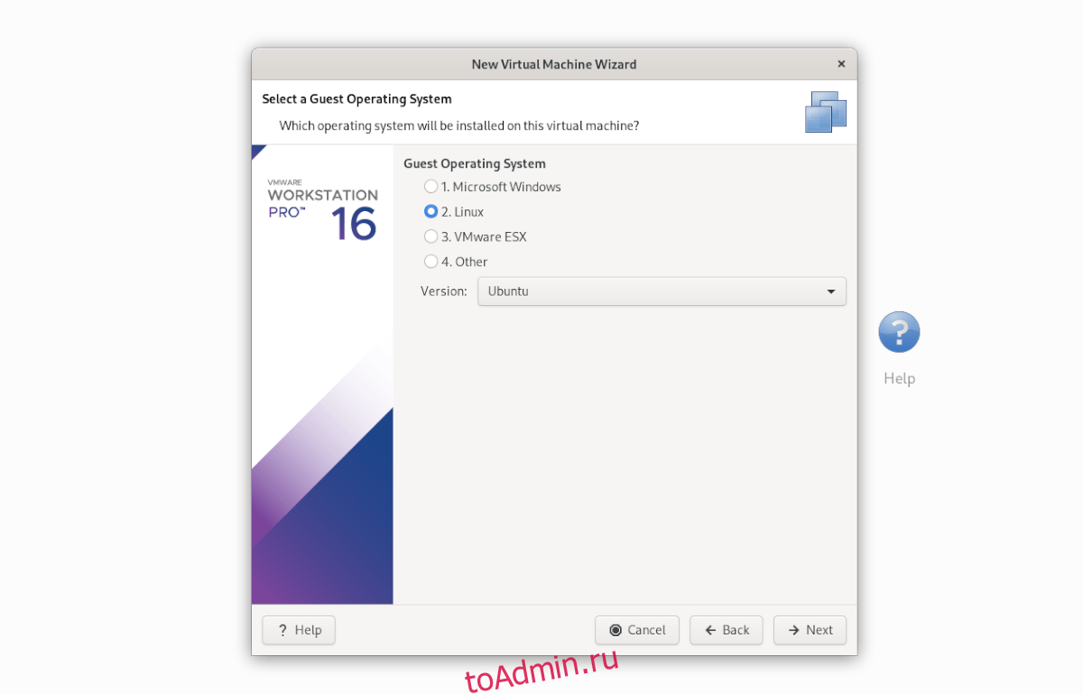В «Выберите гостевую операционную систему» выберите «2. Linux »и нажмите кнопку« Далее », чтобы продолжить.