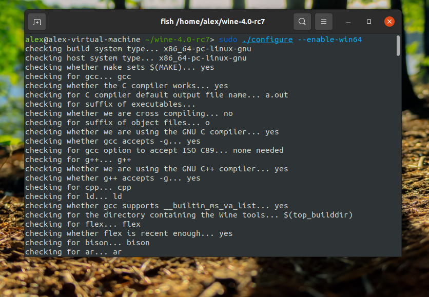 По завершению проверки, в конце будет выведена фраза configure: Finished. Do ‘make’ to compile Wine. Данное сообщение говорит о том, что программа готова к компиляции. Компилируем и запускаем сборку пакета при помощи команды: