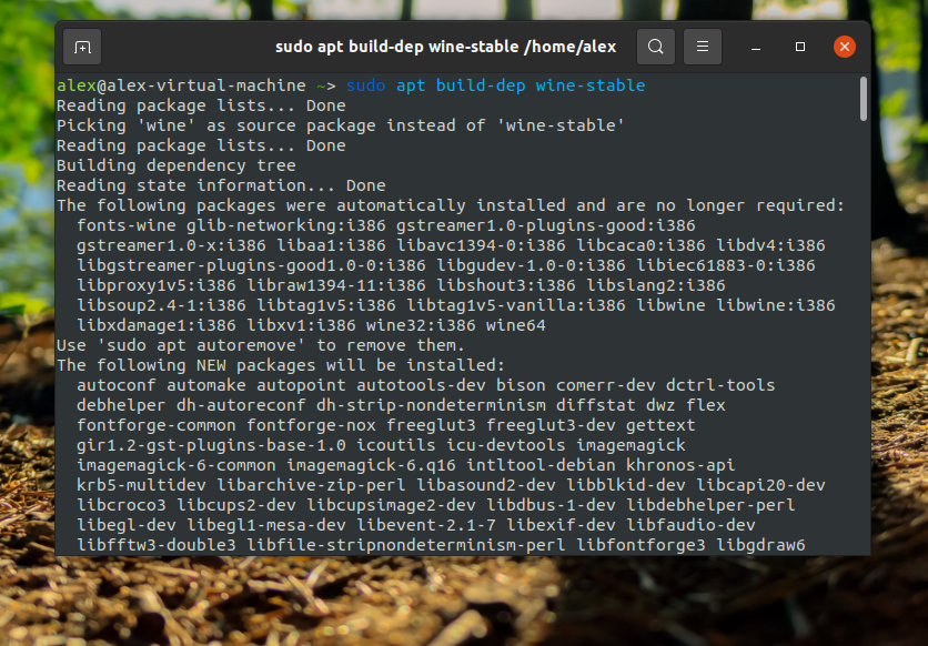 Далее установите все необходимые компоненты для сборки wine при помощи команды: