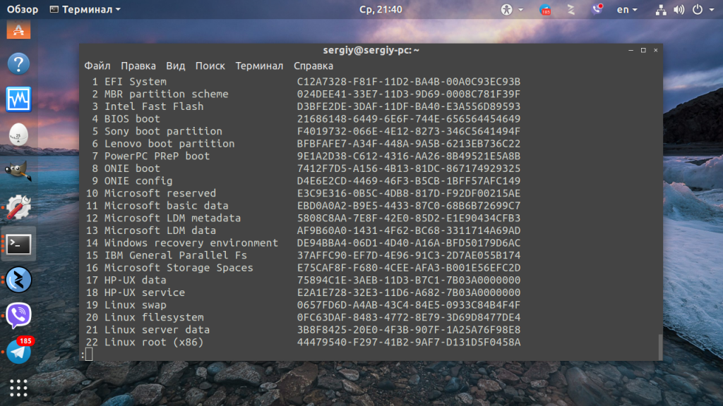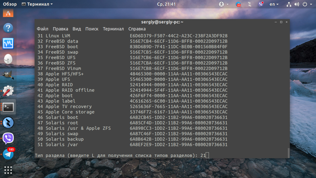 Для выхода из списка разделов нажмите q, а затем просто наберите номер нужного типа: