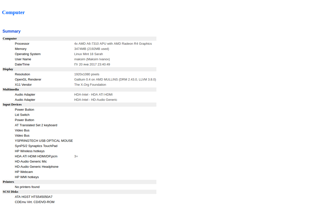 Программа HardInfo в Linux Mint 18 Sarah Mate