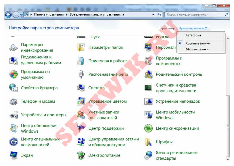 Далее переключитесь на просмотр «Крупные значки» или «Мелкие значки«, если установлено значение «Вид категории». Это поможет вам быстрее перейти к настройкам языка.