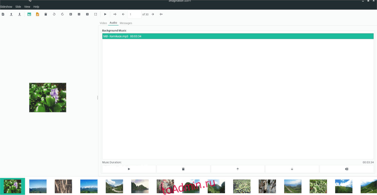 Вы можете добавить в свой проект немного музыки, чтобы сделать его более интересным. Для этого нажмите меню «Слайд-шоу», затем нажмите кнопку «Импортировать музыку», чтобы открыть браузер импорта. Используйте меню браузера импорта, чтобы добавить музыку в проект слайд-шоу.