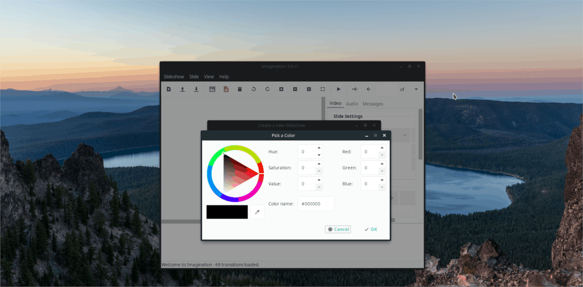 После установки формата и разрешения все, что осталось на этапе настройки, — это установить цвет фона слайд-шоу. По умолчанию используется черный цвет, но если этот цвет не подходит для вашего проекта, вы можете его изменить. Чтобы изменить его, щелкните квадрат черного цвета и выберите новый цвет. Когда все настройки проекта настроены по своему вкусу, нажмите кнопку «ОК».