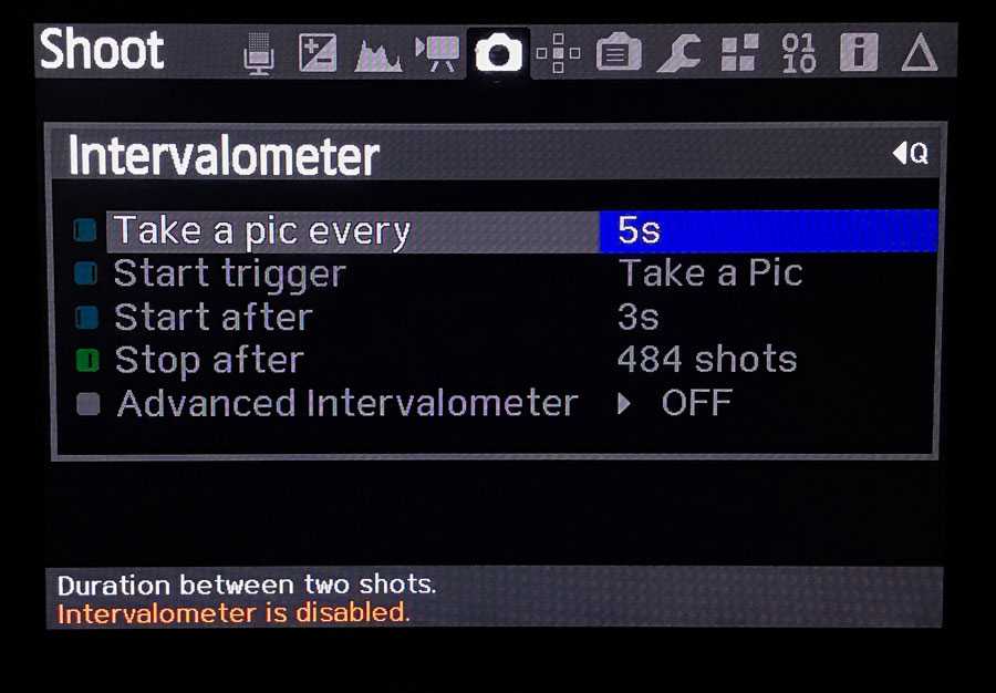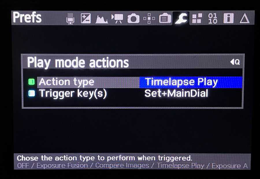 Эта функция связана с применением интервалометра. После того, как серия фотографий сделана, было бы неплохо иметь возможность увидеть, как будет выглядеть готовое видео. В большинстве ситуаций, единственный способ это сделать – нажать кнопку предпросмотра и пролистывать фотографии. С функцией Timelapse Play можно оценить предварительное видео при помощи пары нажатий кнопок. В таком режиме камера будет прокручивать все фотографии в цикле, пока вы ее не остановите.