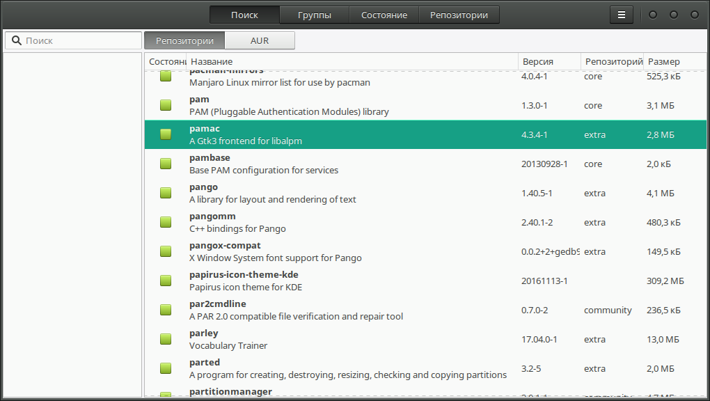 Pacman is the package manager created by the Arch team and used by Manjaro. This is probably the easiest way to install the software. We will cover it in depth later on. Right now, we focus on Pamac.