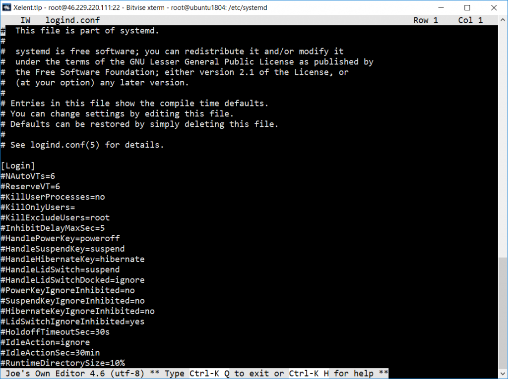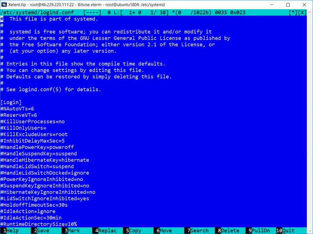 Классический синий фон, подсказки функциональных клавиш внизу и т. д. Не менее удобен, чем nano. Консольные текстовые редакторы в Linux joe, nano и ee запускаются аналогично: