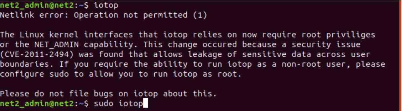 If you want to see only current processes or threads with I/O activities. you should use iotop with -o or –only option..