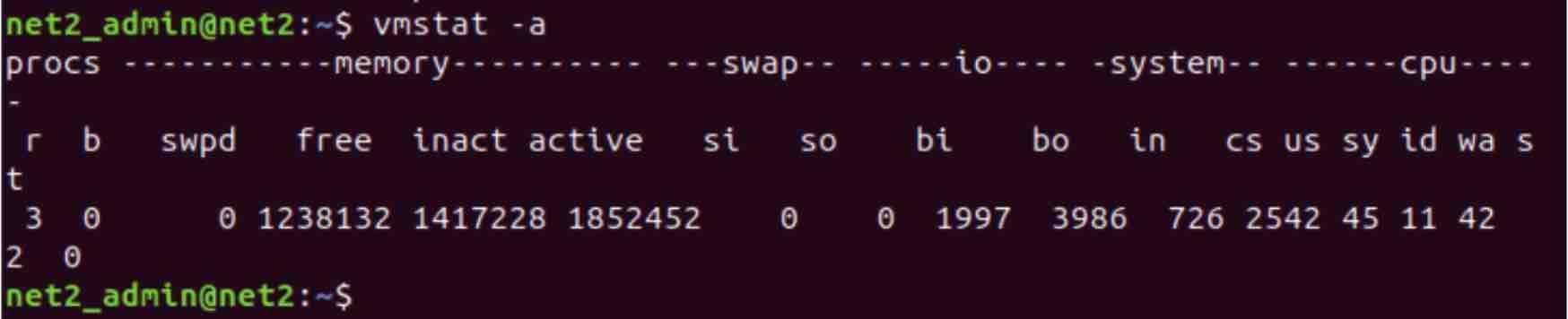 if you run vmstat, you will get an output which looks like the snapshot below :