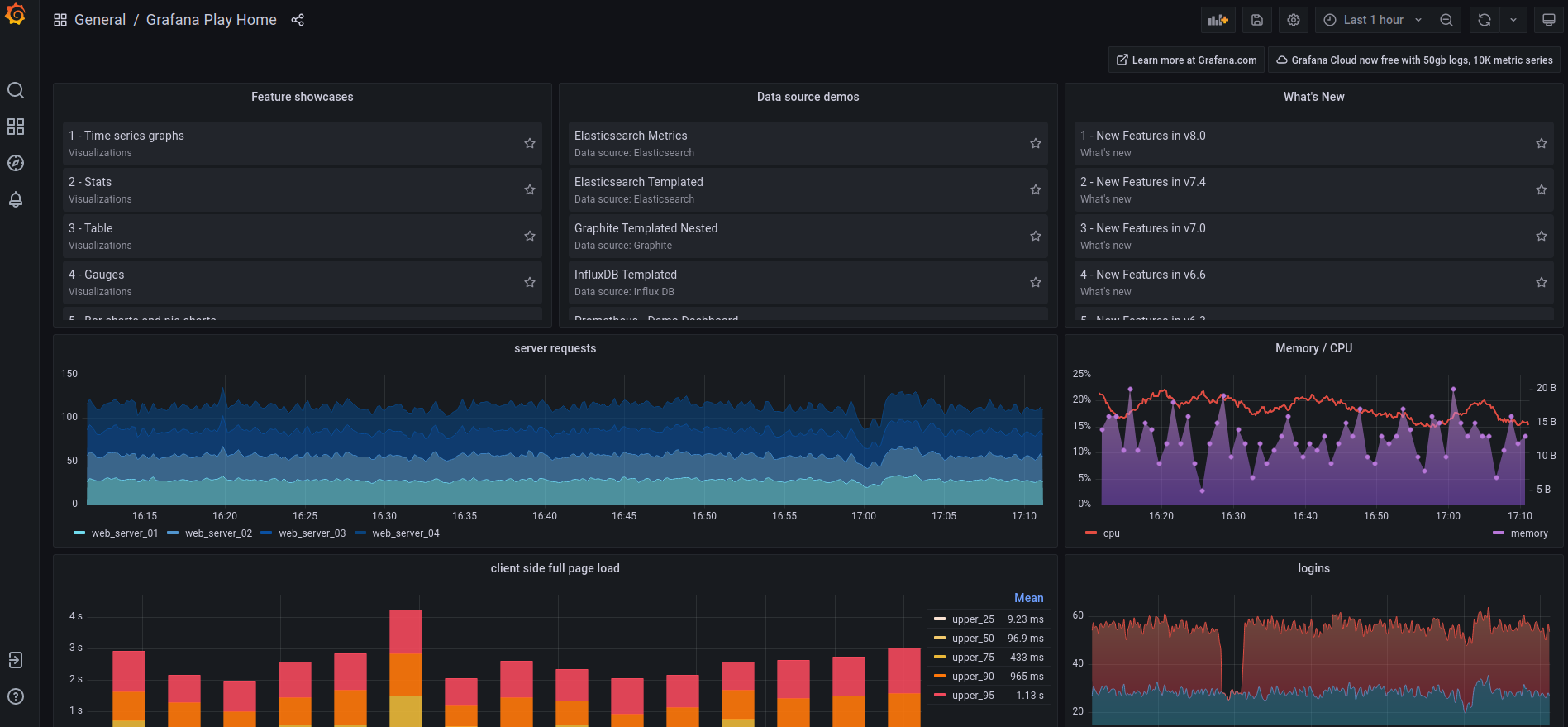 Grafana Play Demo Dashboard with Graphical Stats of different aspects of Server