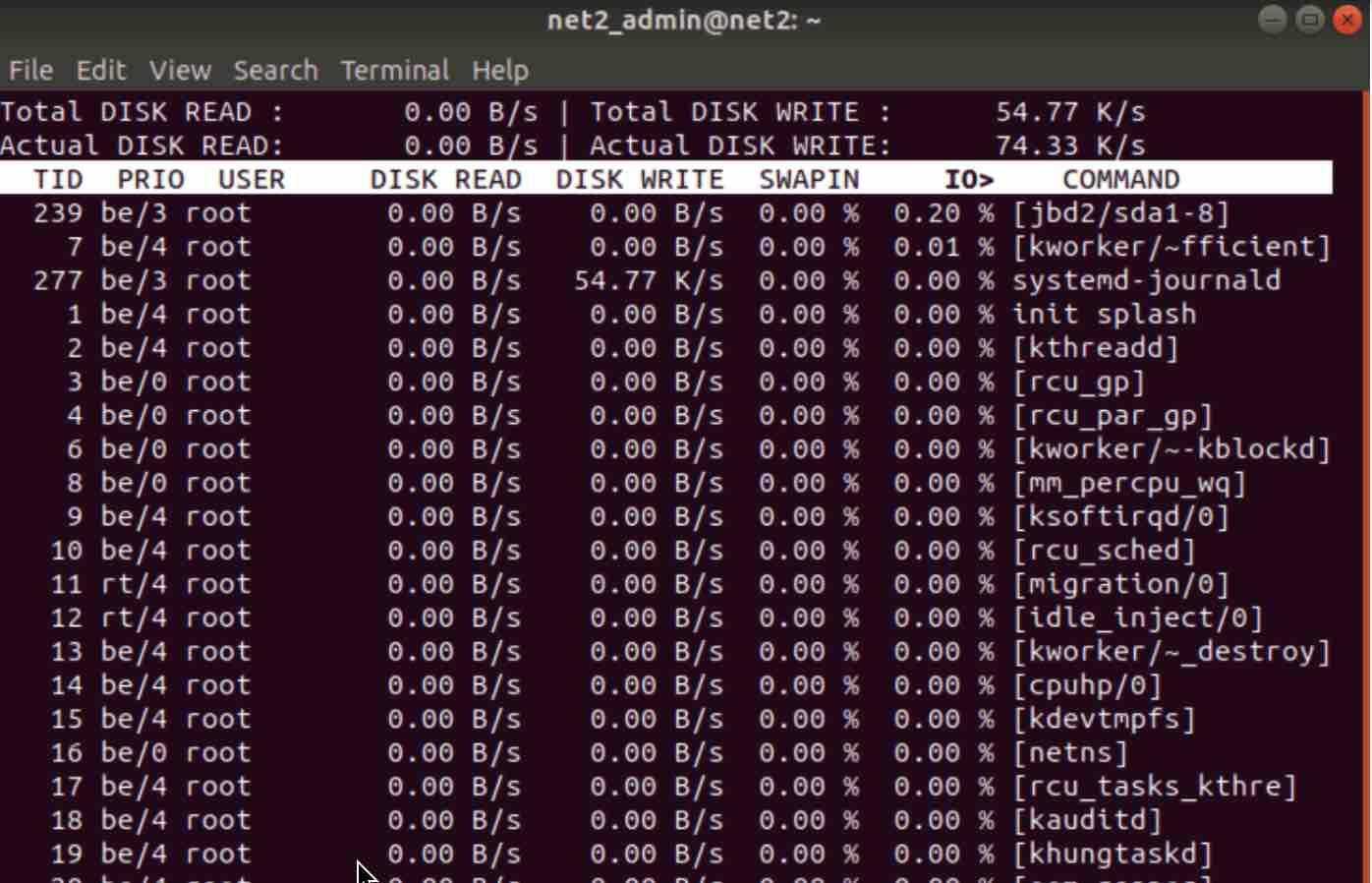 Similar to top command, iotop is an open source tool used to monitor disk i/o usage and outputs current i/o utilization by threads or processes. System administrators will find it useful to identify processes with unusual disk i/o read/writes.