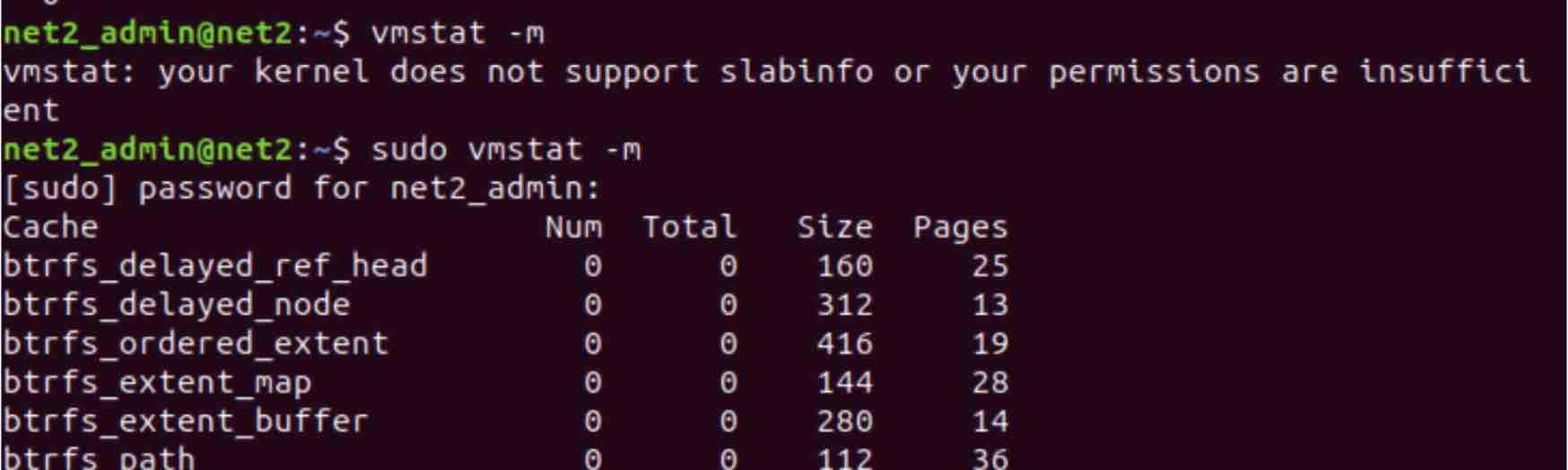 For slabinfo , you will need to have permission or add sudo with the m argument as shown below :