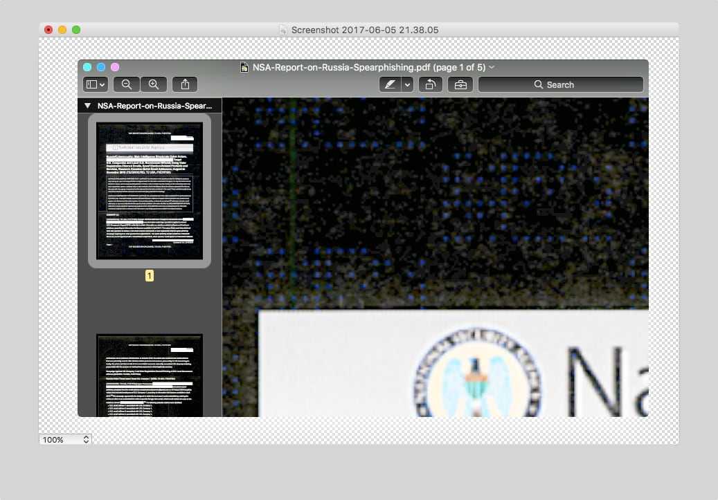 Он скачал PDF с сайта The Intercept, затем открыл его в стандартном приложении Просмотр на macOS, приблизил его, сделал скриншот, инвертировал цвета в фоторедакторе и обнаружил те самые желтые точки.