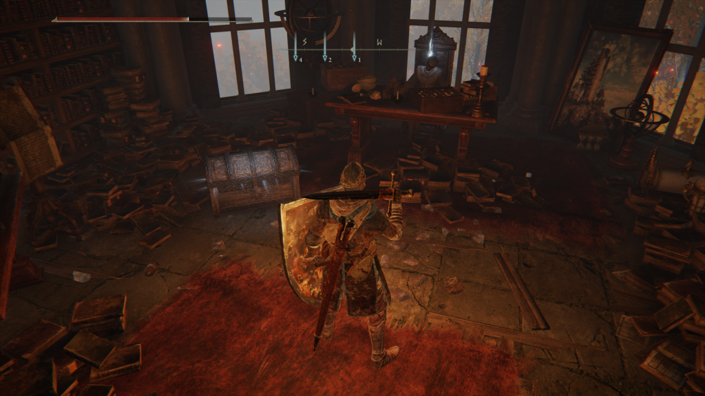 Выходите обратно, сверните налево после прохождения дверей и поднимитесь на лифте. Подберите с тела Талисман волшебного дракона +2 и прыгайте в окно. Игрок окажется прямо перед лестницей, ведущей к месту благодати и выходу из катакомб.