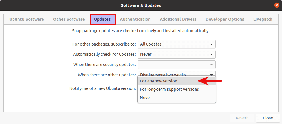 Upgrade Ubuntu 20.04/Ubuntu 21.04 to 21.10 with the Graphical Update Manager
