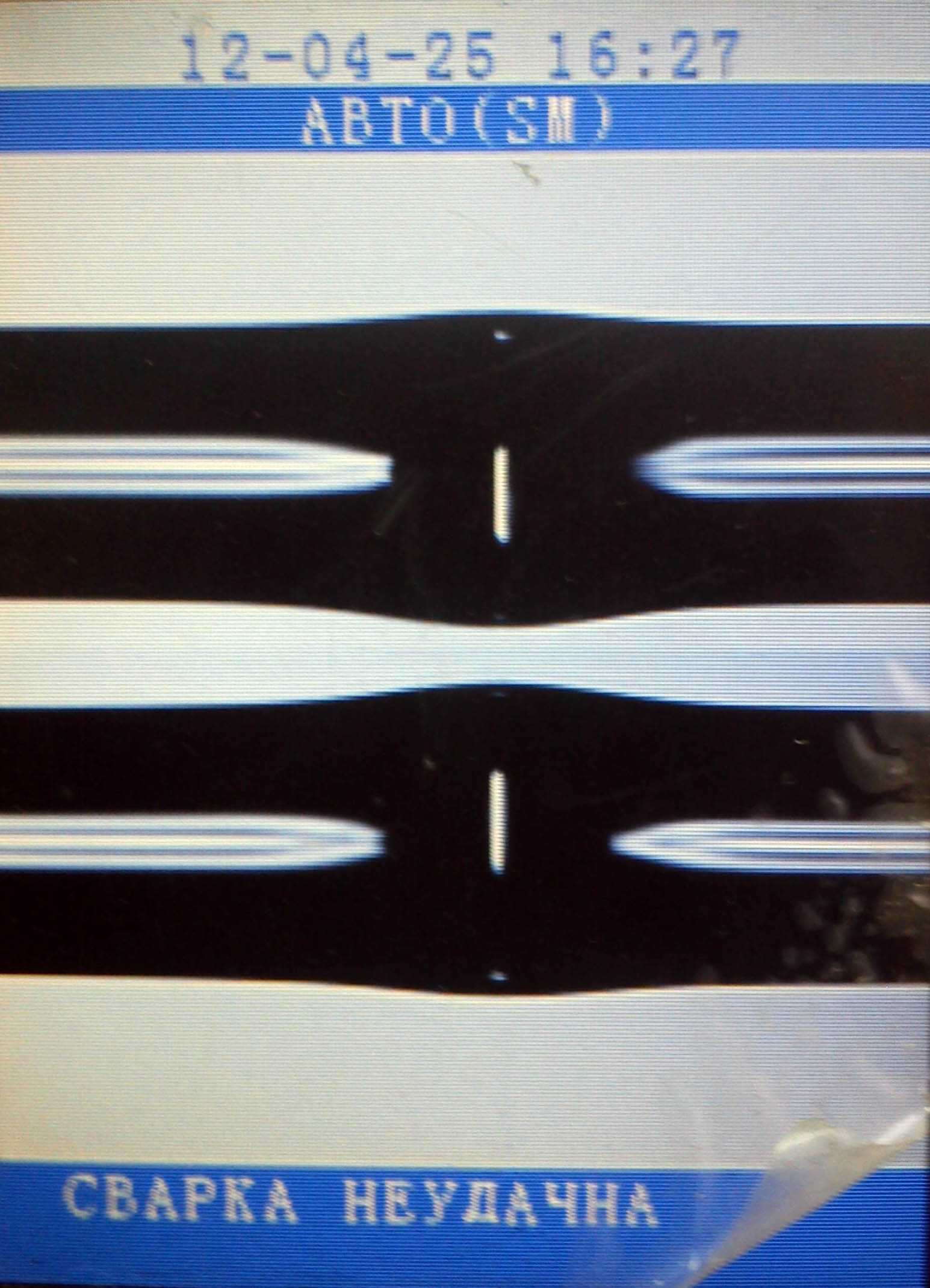 А вот как выглядит на экране сварочного аппарата волокно с пылинкой на сколе и загрязненной поверхностью: