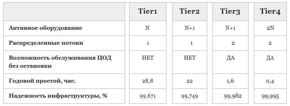 В целом сводка требований стандарта Tier выглядит следующим образом.
