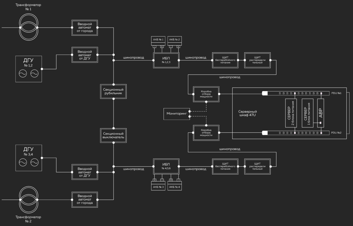 Ключевой параметр, который обеспечивает надёжность работы и высокий аптайм, — это резервирование электропитания.