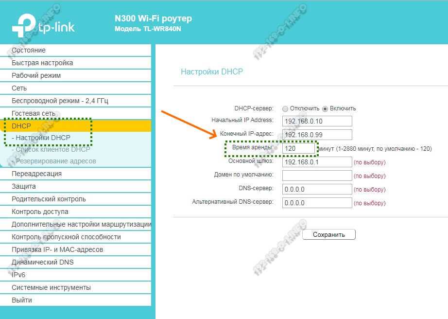 Ещё один важный параметр — это время аренды IP-адреса (тот самый Lease Time) о котором я рассказывал выше. По умолчанию на моём роутере он выставлен на 120 минут. Максимальное значение — 2000 минут. После того, как Вы внесёте какие-то изменения в настройки устройства — обязательно не забудьте сохранить настройки. В противном случае, после перезагрузки в силу вступят старые параметры.