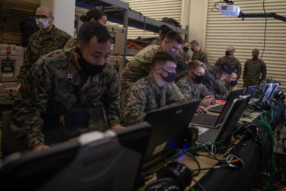 Морские пехотинцы и военнослужащие ВВС США принимают участие в учебном семинаре по использованию системы Tactical Link 16, которая обеспечивает передачу графических изображений и текстовых сообщений.
