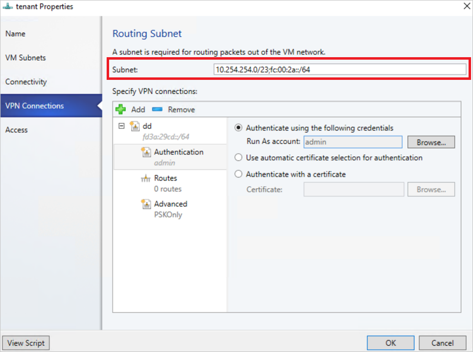 Настройка VPN-подключений типа «сеть — сеть» с помощью VMM