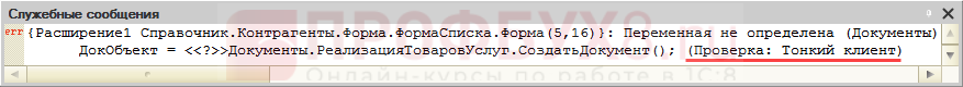 С введением «тонкой» оболочки изменился алгоритм управления конфигурацией: он основан на работе в режиме тонкого клиента и отображаются соответствующие ошибки.