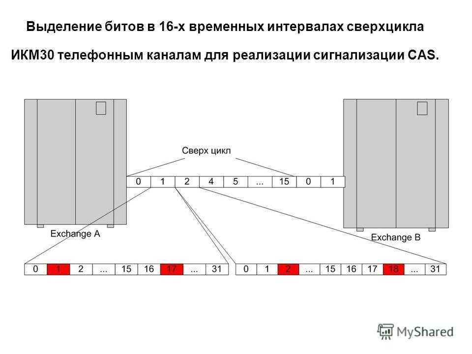 Выделение битов в 16-х временных интервалах сверхцикла ИКМ30 телефонным каналам для реализации сигнализации CAS.