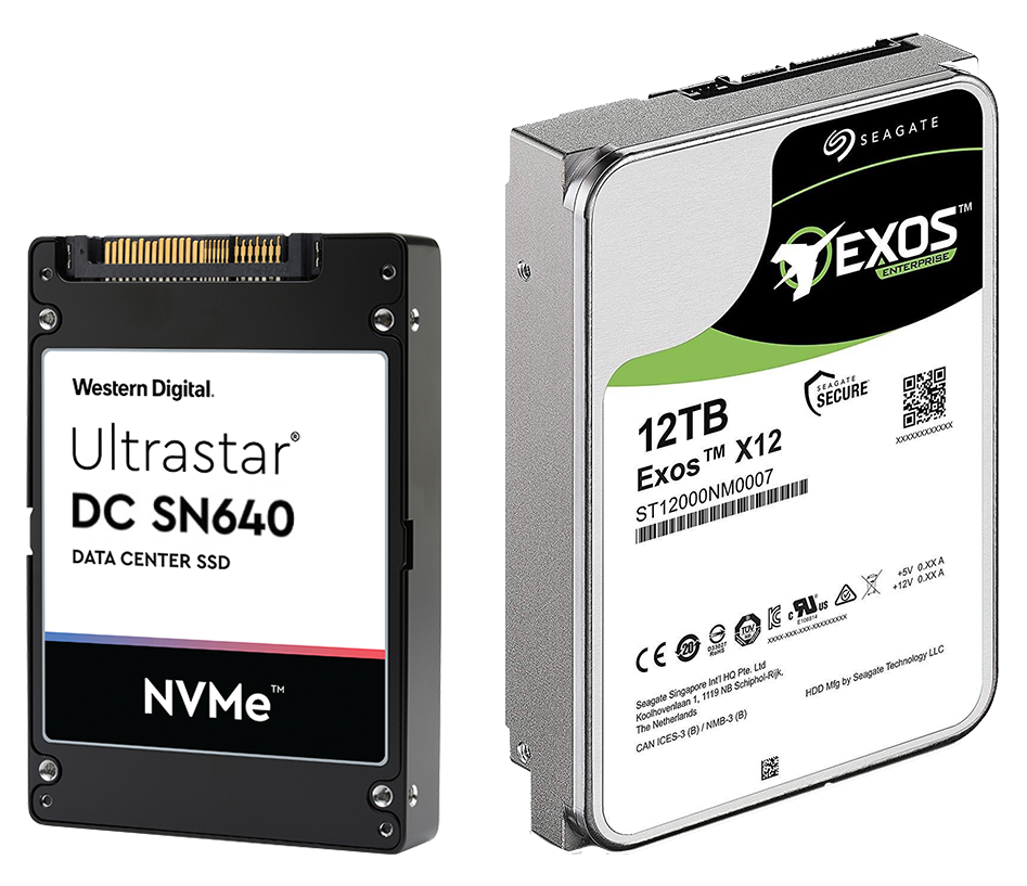 Рисунок 2. Western Digital Ultrastar SN640 в форм-факторе SFF 2.5″ (слева) и Seagate Exos X12 в форм-факторе LFF 3.5″ (справа).