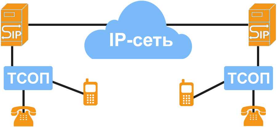 Эта схема звонков между двумя аналоговыми телефонами типична как для частных IP-сетей, так и для звонков между абонентами фиксированной связи.