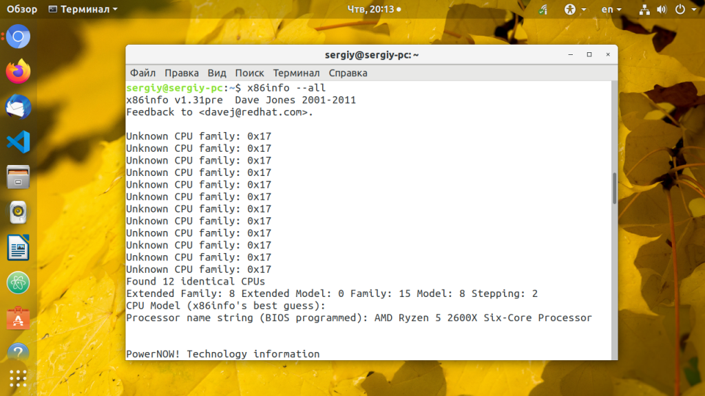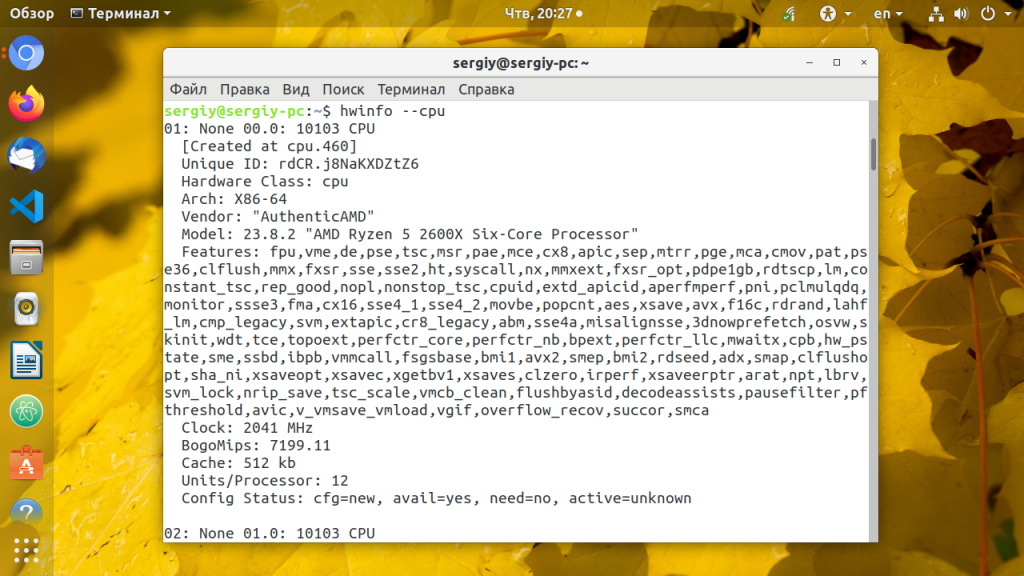 x86info — инструмент командной строки для просмотра информации о процессорах архитектуры x86. Предоставляемая информация включает модель, количество ядер/потоков, скорость таймера, конфигурацию кэша, поддерживаемые флаги и т д. Установка в Ubuntu: