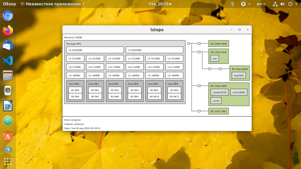 Утилита lstopo входит в пакет hwloc и визуализирует топологию системы. Сюда входит процессор, память, устройства ввода/вывода. Эта команда полезна для идентификации архитектуры процессора и топологии NUMA. Установка: