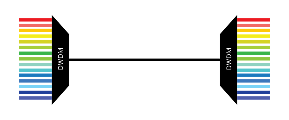 На сегодня аппаратная часть DWDM разрешает транспортировать по одному оптическому волокну 32 и больше волн разной длины в окне прозрачности 1550 нм. И каждая волна может транспортировать данные со скоростью до 10 Гбит/с. На данный момент идет процесс повышения скорости транспортировки данных на одной длине волны с полосой пропускания в 40-80 Гбит/с