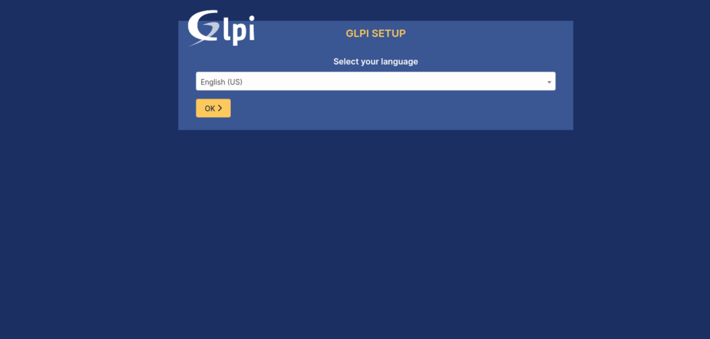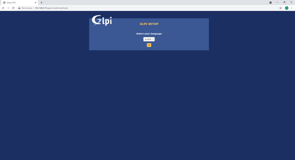 Переходим на наш портал GLPI — откроется страница установки. Выбираем язык установки и нажимаем OK:
