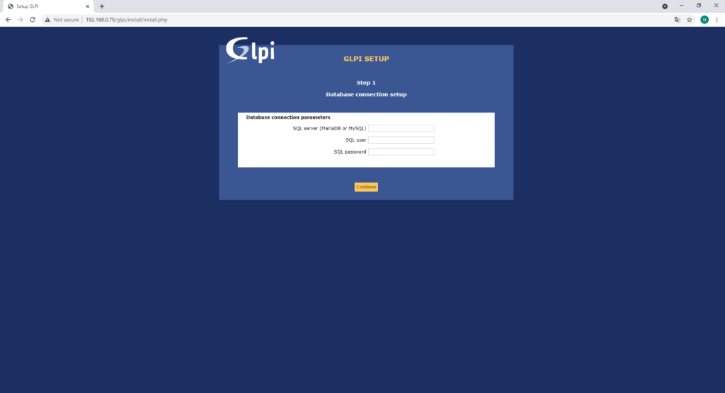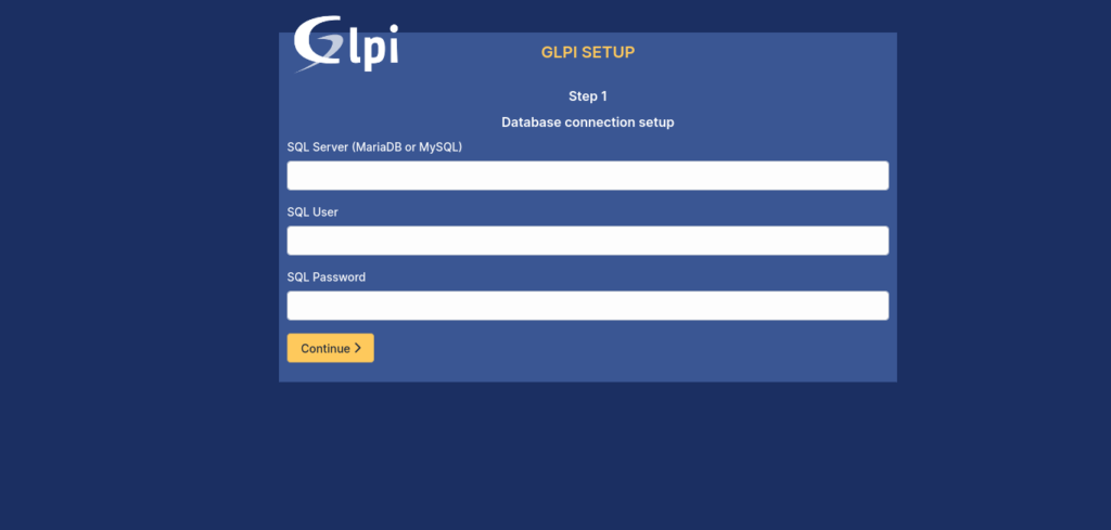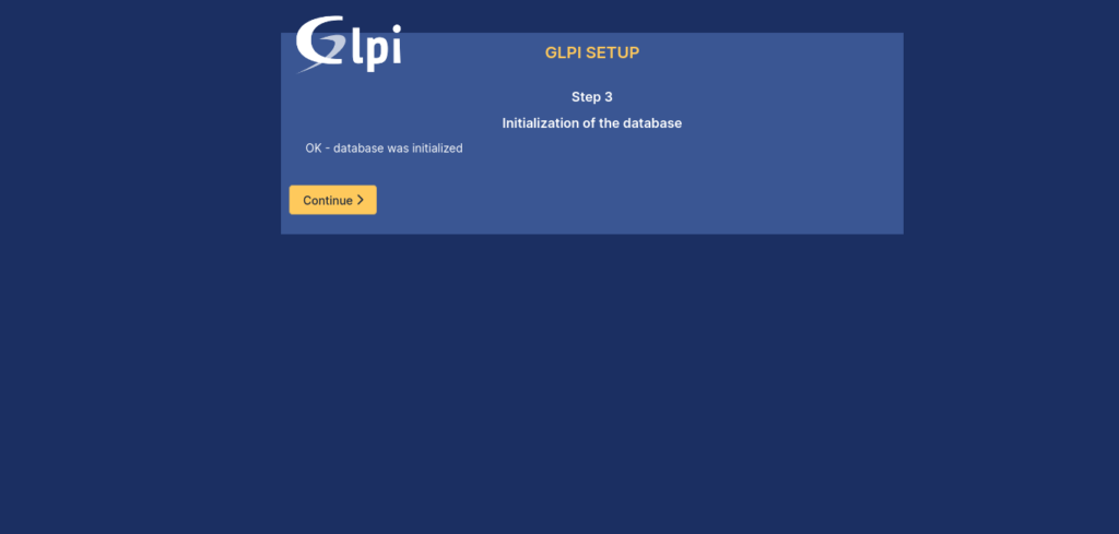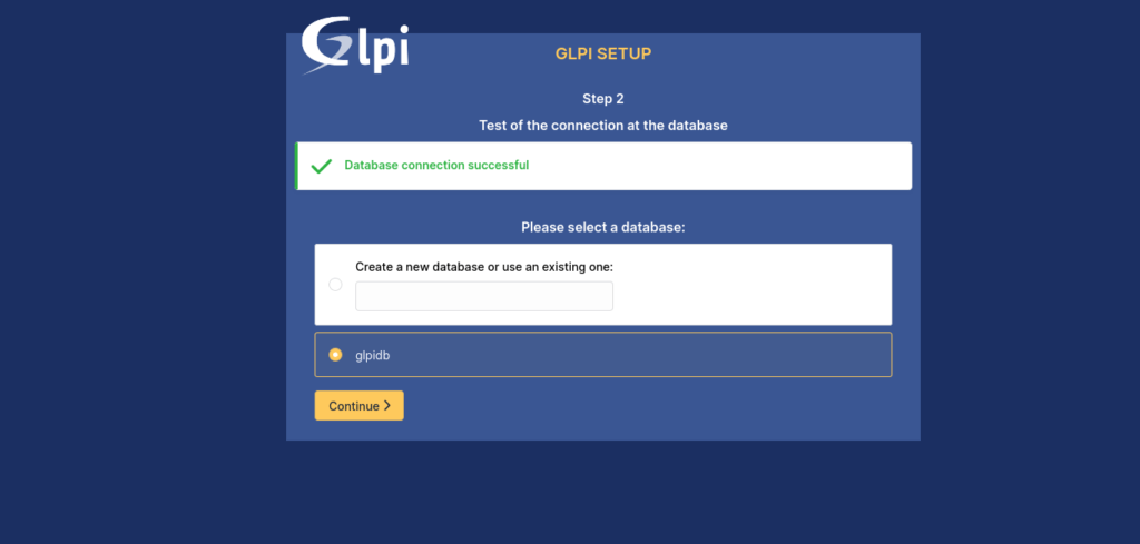 Select the GLPI database and click Continue: