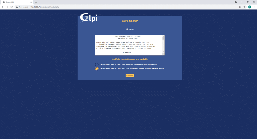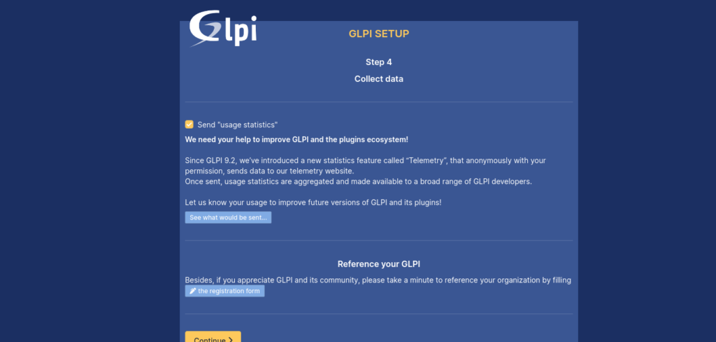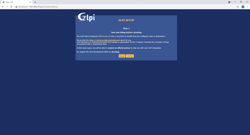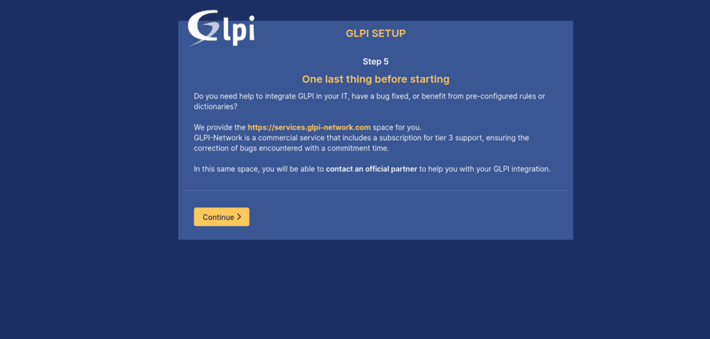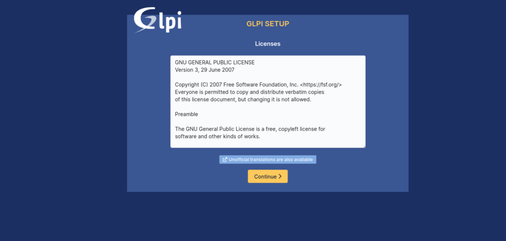 Likewise, you will then be offered information about GLPI.