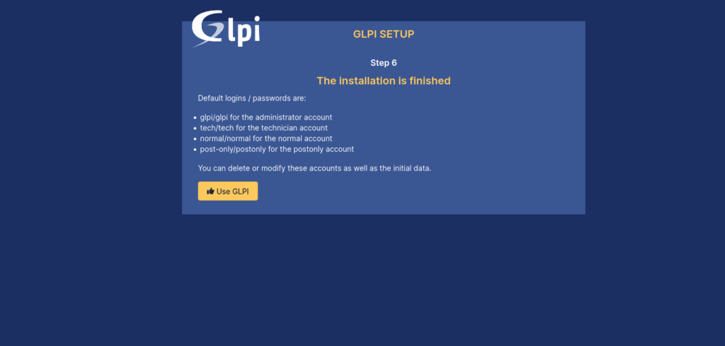 5. Finish the GLPI installation