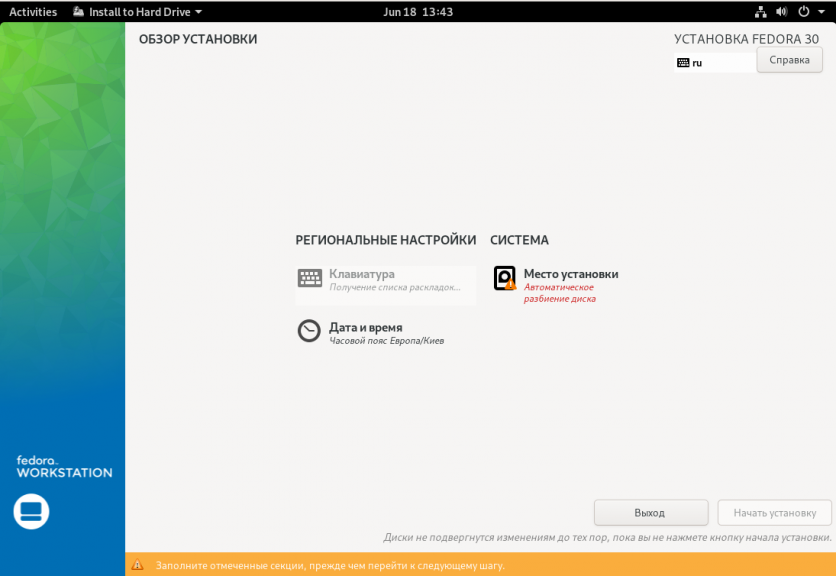 Если все настроено правильно и нет сообщений о проблемах нажмите кнопку Начать установку: