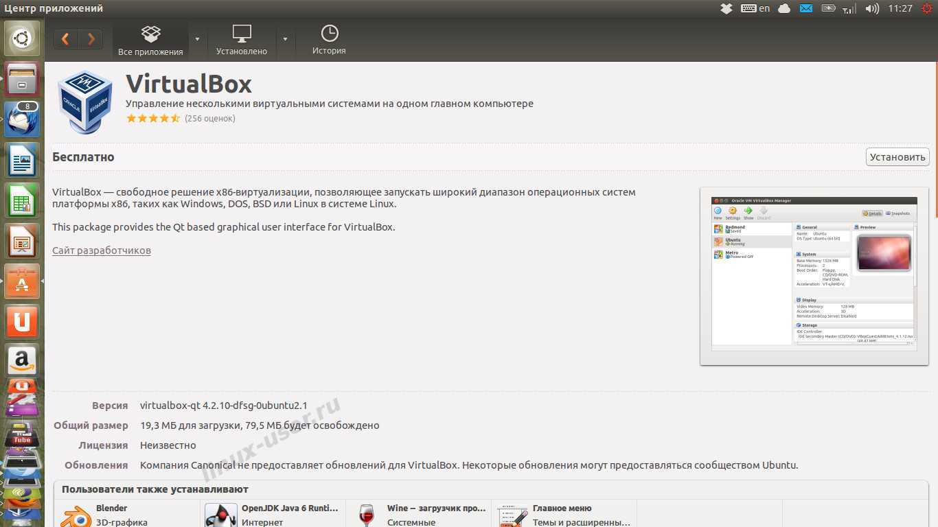 Установка VirtualBox из репозиториев Linux является довольно простой. Этот пакет содержится в репозиториях всех популярных дистрибутивов Linux. Так что вы можете, смело отправляться в Центр приложений вашего дистрибутива и искать там VirtualBox.