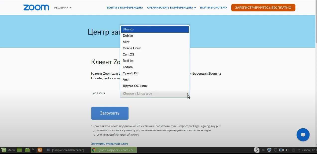 Zoom скачать на Linux Ubuntu