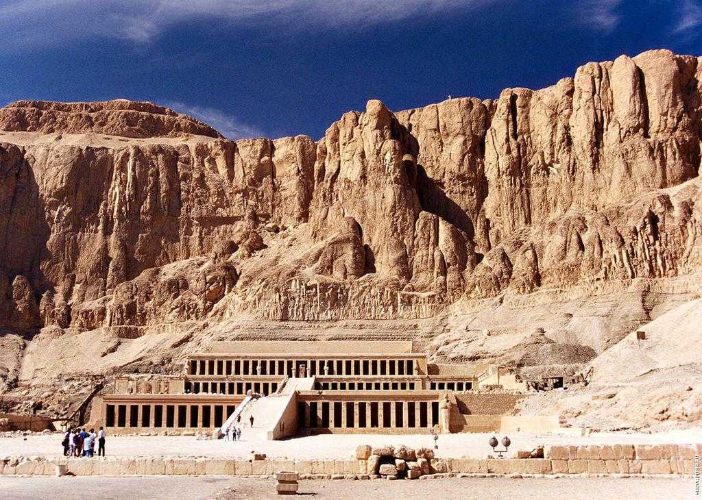 Храм Хатшепсут: погребальный храм самой известной женщины-правителя Египта. Его центральная часть построена непосредственно в основании скалы. В ясную погоду этот памятник виден из Восточного берега.