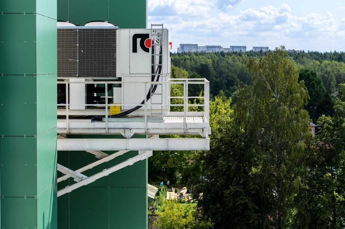 Воздух машинных залов блока А2 охлаждают 4 чиллера (наружных теплообменника) суммарной холодопроизводительностью 3,6 мВт. Система резервирована по схеме N+1, то есть имеет резервные компоненты, которые включатся в работу в момент сбоя одного из основных элементов. У каждого из шести машзалов блока собственная вентиляционная камера с 12 прецизионными кондиционерами в каждой. Они также зарезервированы.