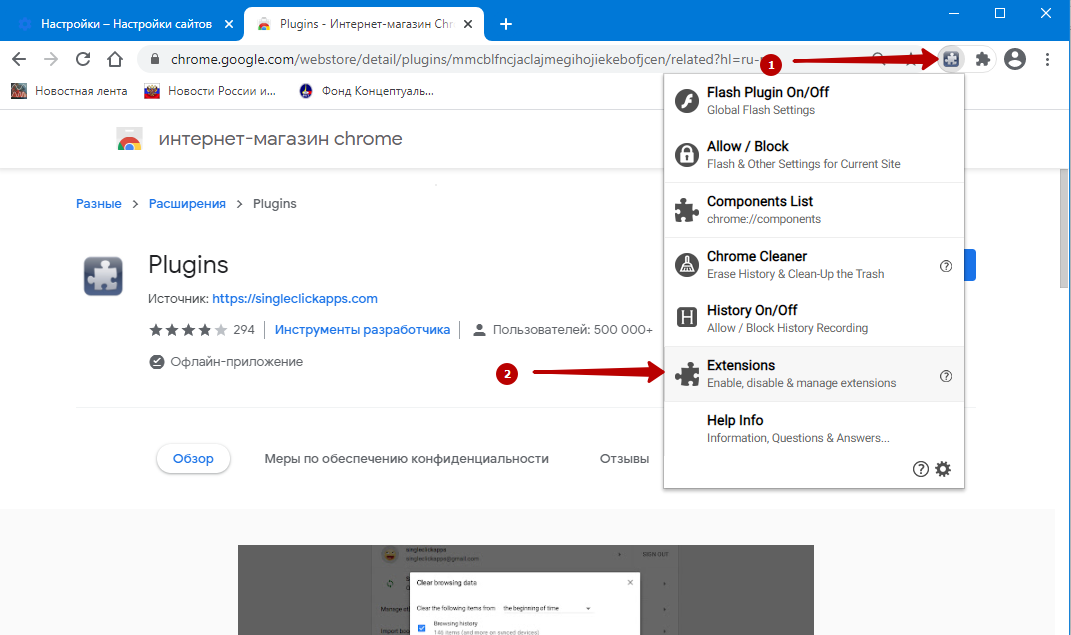 Plugins представляет собой ярлык на страницу со ссылками на разные компоненты и настройки в Chrome, появляющийся на панели управления браузера. А также открывающий быстрый доступ к Flash, функциям включения, отключения и удаления дополнений.