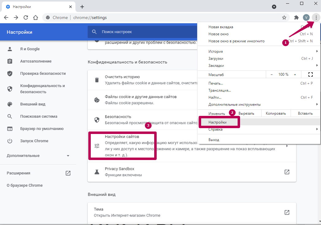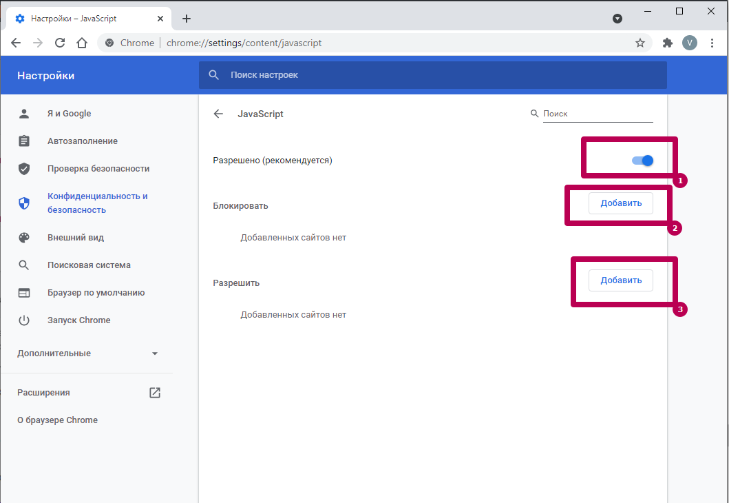 В меню Хрома в разделе «Настройка сайтов» можно полностью отключить или включить для всех сайтов или конкретных выбранных ресурсов компоненты JavaScript, геоданные, картинки и другое.