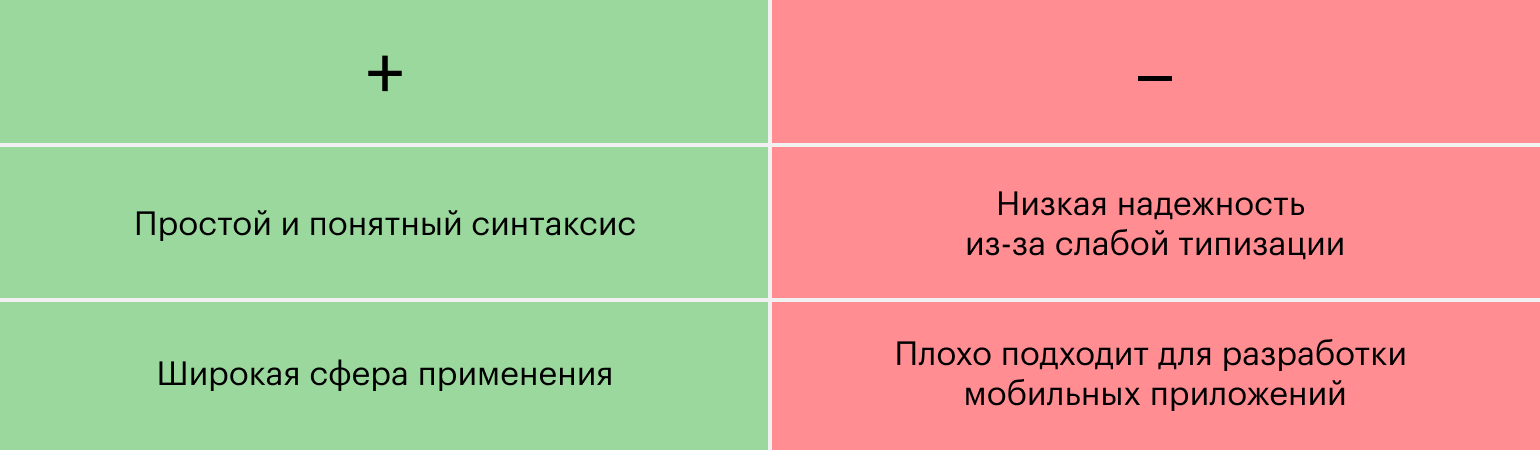 Из-за этой особенности на JavaScript не разрабатываются сложные программы с высокими требованиями к надёжности. Если у вас на сайте не работает кнопка, это неприятно, но не страшно, а вот если у вас ошибка в банковском или промышленном программном обеспечении — это уже хуже.