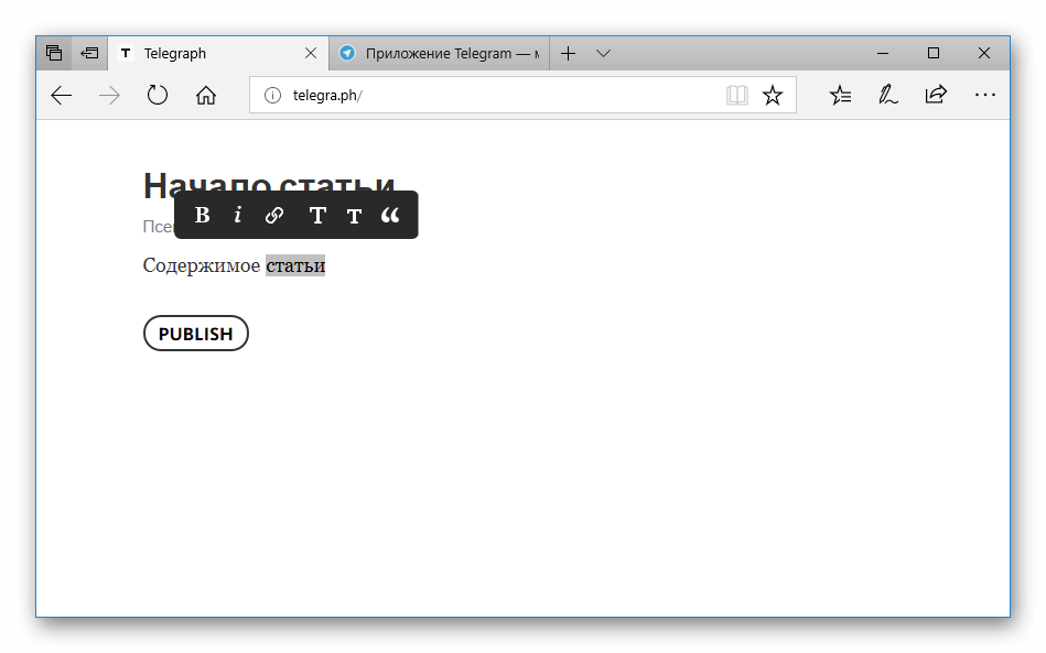 Создание статьи в Телеграф