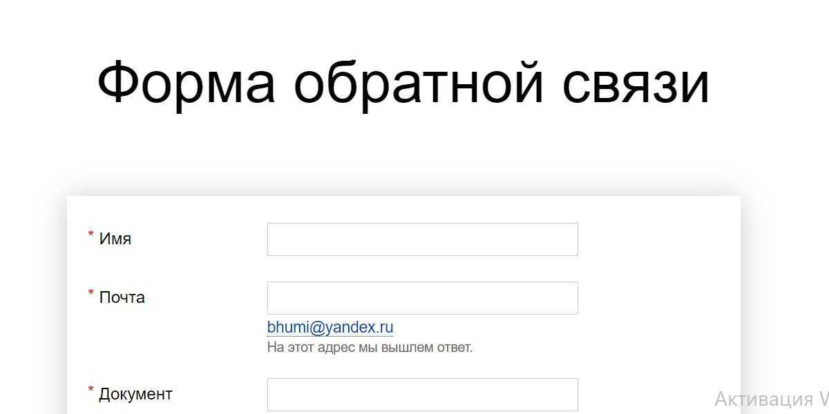 Следующий очень полезный пункт меню – «Обратная связь» с техподдержкой онлайн-редактора Яндекс.Документы. При клике на значок рупора открывается форма обратной связи…
