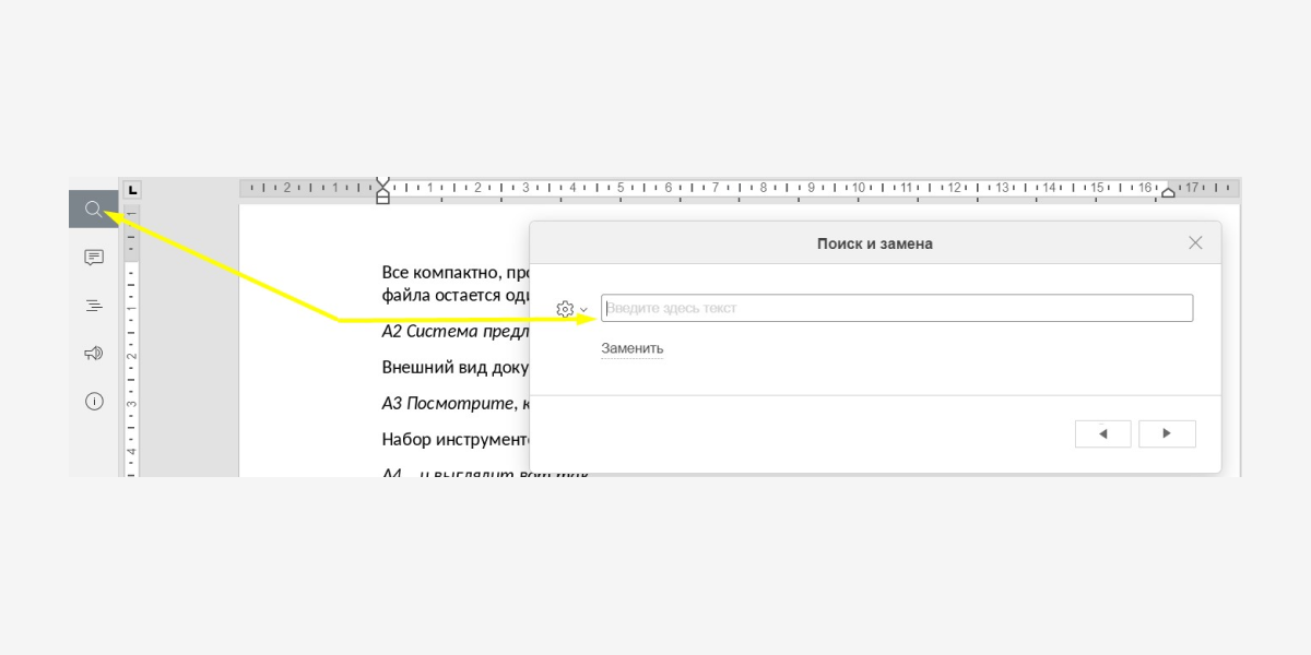 Инструмент «Поиск» – это внутренний поиск по документу.