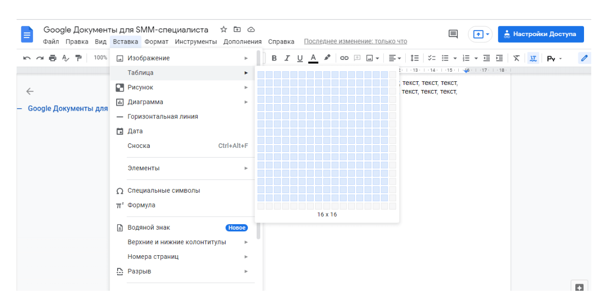 Используются SMM-щиками для сбора статистики, аналитики и подготовки отчетов. Работа с ними происходит преимущественно в Google Таблицах. Об этом мы рассказали в нашей статье «Google Таблицы: гайд для маркетологов и SMM-щиков». Но иногда нужно составить подробный отчет с диаграммами и графиками с их подробным описанием. А это лучше всего делать в Google Документах.