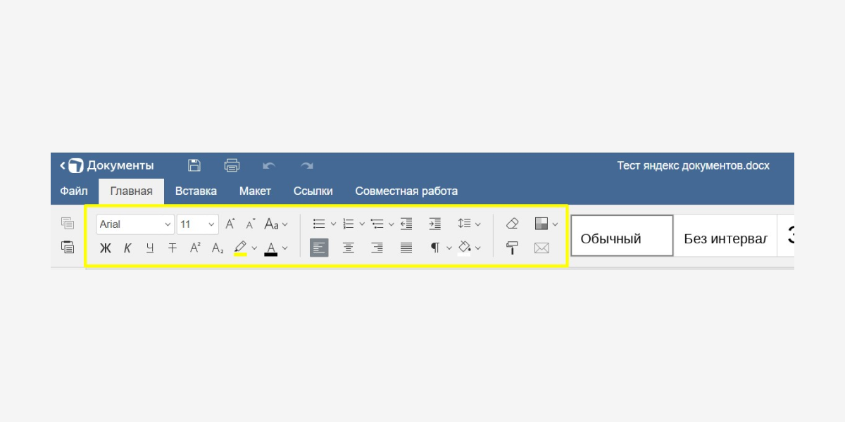 Набор инструментов в редакторе документов на Яндекс.Диске тоже привычный…